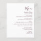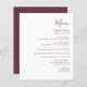 This simple modern wedding menu features burgundy text on a white background. The word "Menu" appear in stylish handwriting calligraphy. Add the couple's name and wedding date in script and italics, along with menu detail in sans serif font. The reverse side is a matching shade of solid burgundy.