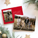 Budget Modern Calligraphy Merry Christmas 2 Photo Holiday Card features a fun and modern script on a full bleed photo, along with a second photo on the back and room for your message.