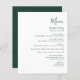 This simple modern wedding menu features emerald green text on a white background. The word "Menu" appear in stylish handwriting calligraphy. Add the couple's name and wedding date in script and italics, along with menu detail in sans serif font. The reverse side is a matching shade of solid emerald green.
