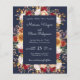 Budget modern fall floral navy blue wedding invitations. Customise names, dates, and information.