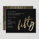 Modern minimalist 50th birthday party invitation features stylish faux gold foil number handwritten bold script fifty and your party details in classic serif font on black background colour, simple and elegant, great surprise adult milestone birthday invitation for men and women. The black background colour can be changed to any colour of your choice.