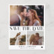 Simple elegant trendy engagement photo collage double-sided BUDGET AFFORDABLE wedding save the date card in neutral black and white. Suitable for modern spring, summer, fall, or winter weddings.