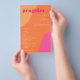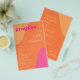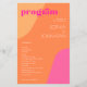 Abstract shapes retro vintage 70s style unique budget affordable groovy wedding program paper flyer template with bold typography in a vibrant trendy modern hot pink magenta and orange chic colour palette. +++++++ Please note that all the colours are changeable. ++++++++++++ Suitable for casual stylish contemporary weddings. ++++ +++ PLEASE READ THIS BEFORE PURCHASING! This is a budget card printed on a FLYER (advertising-type paper). ++++ Please note that BUDGET PAPER IS THIN - You can upgrade to have this program printed on cardstock ++++ ENVELOPES NOT INCLUDED. +++ Double-check all the information and spelling of your text because you will receive exactly what you see - no one else will check anything before printing. ++++ This card is designed for size 4.5" x 5.6". In the case you choose another size of the card and text goes outside page, everything needs to be fixed before adding the product to cart. Please ask Live Design Service for help.