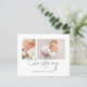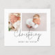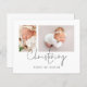 PLEASE NOTE : There are two paper options to choose from for this size (4.5 x 5.6”) in the Budget range. For this product, I would recommend the semi-gloss which is a 110 gsm card stock, similar in thickness to a postcard. The Satin option is a much thinner paper 80gsm. The default is set to semi-gloss. PLEASE NOTE there is ONE per sheet. Budget Modern Script 2 Photos Christening. Minimalist style. Simply replace the two sample photos with your own and personalise with your baby's name and at the bottom and all the details on the back. Christening is in a stylish set script.