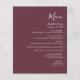This simple modern wedding menu features white text on a dark burgundy background. The word "Menu" appear in stylish handwriting calligraphy. Add the couple's name and wedding date in script and italics, along with menu detail in sans serif font. The reverse side is a matching shade of solid burgundy.