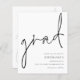 Budget Modern Script Graduation Save the Date. A budget price SMALLER 4.5” x 5.6” alternative (ONE PER SHEET). On a SEMI-GLOSS 110 lb CARD STOCK which is similar in thickness to a postcard. This simple monochrome design has informal set handwriting style script for the main header, grad, and easy to personalise typography to the bottom right hand side with your details. Can be changed to any Colours via the edit further option.