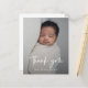 This budget friendly Modern Script Baby Photo Baptism thank you card features a beautiful full bleed horizontal photo and hand lettered thank you script and minimal editable text. Click the edit button to customise this design.