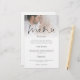 Budget Modern Script Photo Wedding Menu. A LARGER size 5.5” x 8.5” at a budget price,  An elegant design with your photo to the top edge behind a graduated tint layer with the text partially overlaid on top of yorur image at the bottom. The main header is in a stylish set script and the rest of the text you can easily personalise.