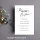 Elegant simple minimal clean black and white "the night before" BUDGET rehearsal dinner invitation PAPER FLYER (advertising type of paper) template featuring a classy stylish chic trendy calligraphy script. . ++++++++++++++ PLEASE READ THIS BEFORE PURCHASING! This is a budget affordable card printed on a FLYER. ++++ Please note that BUDGET PAPER IS THIN (suitable for folded mailings) - You can upgrade to have this card printed on cardstock ++++ ENVELOPES NOT INCLUDED. +++ Double-check all the information and spelling of your text because you will receive exactly what you see - no one else will check anything before printing. ++++ This card is designed for size 5.5" x 8.5". In the case you choose another size of the card and text goes outside page, everything needs to be fixed before adding the product to cart. ++++++++++++ Easy to personalise with your details! The invitation is suitable for elegant wedding rehearsal celebrations