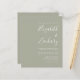 This simple modern wedding invitation features white text on a sage green background. Add the names of the bride and groom in stylish handwriting calligraphy and the details in sans serif font. The reverse side is a matching shade of solid sage green.