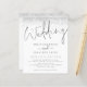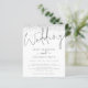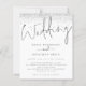 Modern Script Silver Glitter Wedding Invite. A budget price SMALLER 4.5” x 5.6” alternative. Available in a SEMI-GLOSS 110 lb CARD STOCK which is the default option (thicker for invitations), OR a SATIN FINISH 80 lb THINNER PAPER STOCK (ideal for enclosures). Envelopes are an optional extra and are slightly larger than the card size. Wedding is in set stylish script across the top and elegant typography below with your details. A silver faux glitter border runs across the top. Easily personalise the rest of the text to your own details. You can also change the text and background colours via the customise further option if you wish.