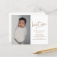 This modern photo baby baptism invitation features hand lettered calligraphy script baptism art that is moveable and you can easily change the colour of, a vertical photo and editable text. Click the edit button to customise this design.
