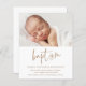 This modern photo baby baptism invitation features hand lettered calligraphy script baptism art that is moveable and that you can easily change the colour of, a horizontal photo and editable text. Click the edit button to customise this design.