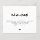Simple elegant minimalist custom black and white we've moved handwriting calligraphy script moving announcement. +++++++++ Easy to personalise with your new home address! ++++++++++ PLEASE READ THIS BEFORE PURCHASING! This is a budget affordable wedding card printed on a paper sheet (each sheet has one card). ++++ For the best rapport price-quality, our advice is to choose the Semi-Gloss paper type (it is thick enough to be used for stationery) ++++ If you need envelopes, choose the ENVELOPE OPTION. +++ Double-check all the information and spelling of your text because you will receive exactly what you see - no one else will check anything before printing. ++++ This card is designed for size 4.5" x 5.6". In the case you choose another size of the card and text goes outside page, everything needs to be fixed before adding the product to cart. Please ask Live Design Service for help.