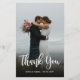 Budget Modern Hand Lettered Script Wedding Photo Thank You personalized affordable low budget thin card. Modern Stylish wedding thank you template featuring a full vertical photo on the front with the text "Thank You" in a huge hand lettered typography script font (overlay) in white on the picture.