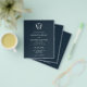 Save money on your weddings with this budget wedding invitations. They feature a mix of classic and script typography in white over a solid blue background. Enter the bride and groom's monogram initials in the centre of a crest. All the colours can be customised to suite your wedding colour scheme. Use the template fields to personalise with your names and details. Mix and match with many of my designs to create your customised wedding theme. A minimal yet elegant design for nautical and beach wedding ideas on a budget. To see the matching traditional wedding stationery suite visit www.zazzle.com/dotellabelle