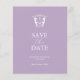 Announce your engagement with this modern budget save the date sheet. It features a mix of classic and script typography in white over a solid lilac purple background. Enter the bride and groom's monogram in the centre of a crest. All the colours can be customised to suite your wedding colour scheme. Use the template fields to personalise with your name and wedding date. Mix and match with many of my designs to create your customised wedding theme. A minimal yet elegant design for garden wedding ideas on a budget. To see the matching wedding stationery suite visit www.zazzle.com/dotellabelle