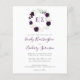 This wedding design features the bride and groom's monogram initials in dark purple framed by a watercolor wreath of blush and purple flowers and green foliage. Personalise the text with the couple's names in elegant purple handwriting script and the wedding details in charcoal grey. The reverse side is a solid shade of purple.
