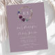 This wedding design features the bride and groom's monogram initials in dark purple framed by a watercolor wreath of purple flowers on a gold faux foil circle. Personalise the text with the couple's names in elegant white handwriting script on a mauve background, with the wedding details below. The reverse side is a solid shade of mauve.