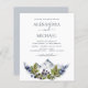 Budget Mountain Rustic Outdoor Berries and Greenery Watercolor Spring Wedding Dusty Blue and Green Elegant and Modern Invitations on White background - includes beautiful and elegant script typography with modern botanical leaves and greenery for the special Wedding day celebration.