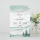 Budget Mountain Rustic Outdoor Forest Greenery Watercolor Spring Wedding Green Elegant and Modern Invitations on White background - includes beautiful and elegant script typography with modern botanical greenery for the special Wedding day celebration.