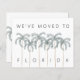 Budget We Moved to Florida Palm Trees New Address Card... The front of our affordable Florida moving announcement features a small forest of palm trees, telling recipients at a glance the location of your recent move, even if they didn't read the text "We've Moved to Florida." The back of the card contains all of the new details your family and friends will need to stay in touch. The example text on front and back can be easily revised on the personalisation template. (The letters in "FLORIDA" are spaced to fall between the tree trunks (in case you decide to change the text.) PLEASE NOTE: Envelopes are not automatically included with budget cards, although you can order them at the same time as your cards by using the "Envelopes" drop-down menu.