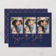 BUDGET Navy Blue Art Deco Rose Gold Handwritten Save the Date Multiple Photo Card in a font that is elegant and evokes a romantic handwritten feel. On the back is a trendy, geometric art deco style design in chic rose gold foil on a navy blue background. Designed to use three of your favourite photos for added customisation. Easily add your names and dates for a truly personalised design. **Our BUDGET paper is smaller and more delicate, but still beautiful! Don't forget the envelopes!** If you need assistance or matching items, please contact us at cedarandstring@gmail.com