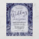 Elegant design featuring a damask watercolor illustration on a deep navy blue. Over this is an arch design in a transparant white, which forms the the backdrop for your wedding details. Click 'personalise this template' to change the text.