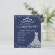 Modern Glam Navy Blue Diamond Tiara Princess Gown Dress Glitter Confetti Sparkle 15th Birthday Quinceanera Invitation
