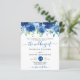 Budget navy blue watercolor floral wedding invitation, with a very light peri wash textured background. Customise names, dates, and information.
