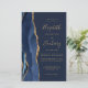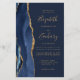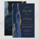 The left-hand edge of this elegant modern wedding invitation features a navy blue watercolor agate border trimmed with faux gold glitter. The customizable text combines gold-colored handwriting, copperplate and italic fonts on a navy blue background. The reverse side features a matching navy blue and gold agate design. NOTE: Envelopes are not automatically included with these budget invitations, so please remember to choose the "blank white envelopes" option!