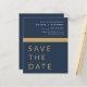 Budget Wedding Elegant Navy Blue and Gold Save the Date Cards. The Save the Date cards contain a modern hand lettered cursive script typography that are elegant, simple and modern to use after you minimalist simple wedding day celebration.
