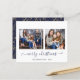 BUDGET Navy Blue Gold Simple Script Modern Merry Christmas Photo Holiday Card featuring two of your favourite photos and a simple, yet elegant script Merry Christmas greeting. The back is adorned with a festive, yet elegant pattern of gold foil style leaves, pine, and other winter botanical greenery on a winter navy blue background. Perfect for your holiday cards this year! **Our BUDGET paper is smaller, lighter, and more delicate, but still beautiful! Don't forget the envelopes!** If you need assistance or matching items, please contact us at cedarandstring@gmail.com.