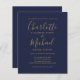 Budget Navy Blue Gold Script Wedding Invitation