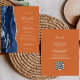 Budget Navy Blue Orange QR Code Wedding Invitation