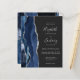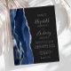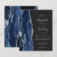 The left-hand edge of this elegant modern wedding invitation features a navy blue watercolor agate border trimmed with faux silver glitter. The customisable text combines handwriting, copperplate and italic fonts in silver grey on a dark background. The reverse side features a matching navy blue and silver agate design. NOTE: Envelopes are not automatically included with these budget invitations, so please remember to choose the "white envelopes" option!