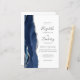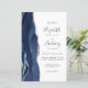 The left-hand edge of this elegant modern wedding invitation features a navy blue watercolor agate border trimmed with faux silver glitter. The customisable text combines handwriting, copperplate and italic fonts in charcoal grey on a white background. Add additional details on the back, along with a QR code to help your guests visit your wedding website.