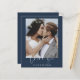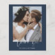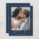 Budget Navy Blue Wedding Thank You Cards that have a photo on the front and back. The Thank you cards contain a modern hand lettered cursive script typography that are elegant, simple and modern to use after you wedding day celebration.