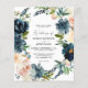 Save money on formal invitations with this smaller invitation that has an option for envelopes. Get your guests ready for the amazing wedding with this Navy, Dusty Blue & Pink Floral wedding invitation.