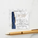 The left-hand edge of this elegant modern wedding website enclosure card features a navy blue watercolor agate border trimmed with faux gold glitter. The title appears in gold-coloured handwriting script, with customisable text below in black copperplate font on a grey and white marble background. Upload your wedding website QR code to replace the sample image on the reverse side, framed by the words "scan me to RSVP."