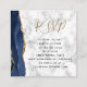 Budget Navy Gold Agate Marble Wedding QR Code RSVP Enclosure Card