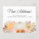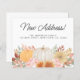 This budget moving announcement card is decorated with watercolor pumpkins, fall foliage, and flowers. It says "New Address" in stylish script typography.