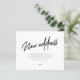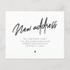 Simple elegant minimalist black and white new address calligraphy script moving announcement. +++++++++ Easy to personalise with your new home address! ++++++++++ PLEASE READ THIS BEFORE PURCHASING! This is a budget affordable wedding card printed on a paper sheet (each sheet has one card). ++++ For the best rapport price-quality, our advice is to choose the Semi-Gloss paper type (it is thick enough to be used for stationery) ++++ If you need envelopes, choose the ENVELOPE OPTION. +++ Double-check all the information and spelling of your text because you will receive exactly what you see - no one else will check anything before printing. ++++ This card is designed for size 4.5" x 5.6". In the case you choose another size of the card and text goes outside page, everything needs to be fixed before adding the product to cart. Please ask Live Design Service for help.