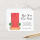It is decorated with a watercolor of a red door, topiary pots, and stylish script typography.