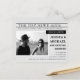Fun save the date mimicking the style of a newspaper first page with a black and white photo of the couple and wedding date and place. A newspaper paper background. Bold fonts. Truly unique and creative.