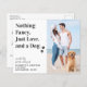 Nothing Fancy Just Love and a Dog! Let your Best Dog announce your wedding with this modern and elegant 'Nothing Fancy, Just Love, and a Dog' pet dog save the date cards. Customise with your best dog's favourite photo, engagement photo with the dog, or a couples photo and personalise with names, date, and wedding location. This dog wedding save the date announcement will be a hit with your family and friends. COPYRIGHT © 2020 Judy Burrows, Black Dog Art - All Rights Reserved. Budget Nothing Fancy Just Love Dog Save The Date. These budget wedding invitation postcards need to be mailed as oversized postcards so may incur standard postage fees but they don't need an envelope or a return address label.
