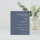Budget Nothing Fancy Just Love Navy Save the Date> A budget price SMALLER 4.5” x 5.6” alternative. Available in a SEMI-GLOSS 110 lb CARD STOCK which is the default option (thicker for invitations), OR a SATIN FINISH 80 lb THINNER PAPER STOCK (ideal for enclosures). Contemporary simple elegance with this fully customisable typographical design, with white text on an enchanted Dusty navy blue background on both sides. Easily personalise the words to your own. You can also change the text and background colours on each side to match your wedding theme if you wish via Customise further. If you need any assistance with this please message me.
