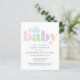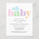 This budget-friendly gender-neutral baby shower invitation features "oh baby" in a rainbow of pastel teal, blue, green, pink, purple and orange modern bold typography. You can easily personalise with the shower details and customise "Baby Shower" to "Baby Boy Shower" or "Baby Girl Shower" if desired.