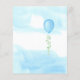This budget boy's Baby Shower Invitation is decorated with a watercolor blue balloon and green eucalyptus on a sky background and says "Oh Boy!"