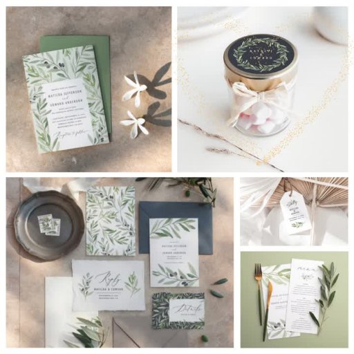 budget hand-drawn watercolor olive branches form the backdrop of this wedding details card.